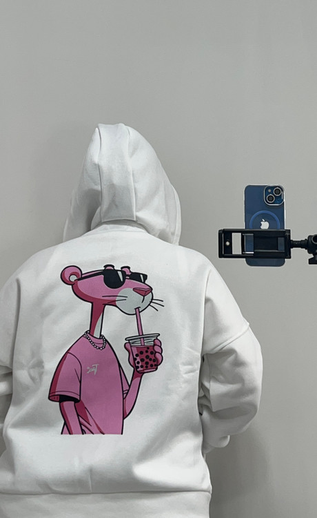 سویشرت کلاهدارطرح پلنگ صورتی