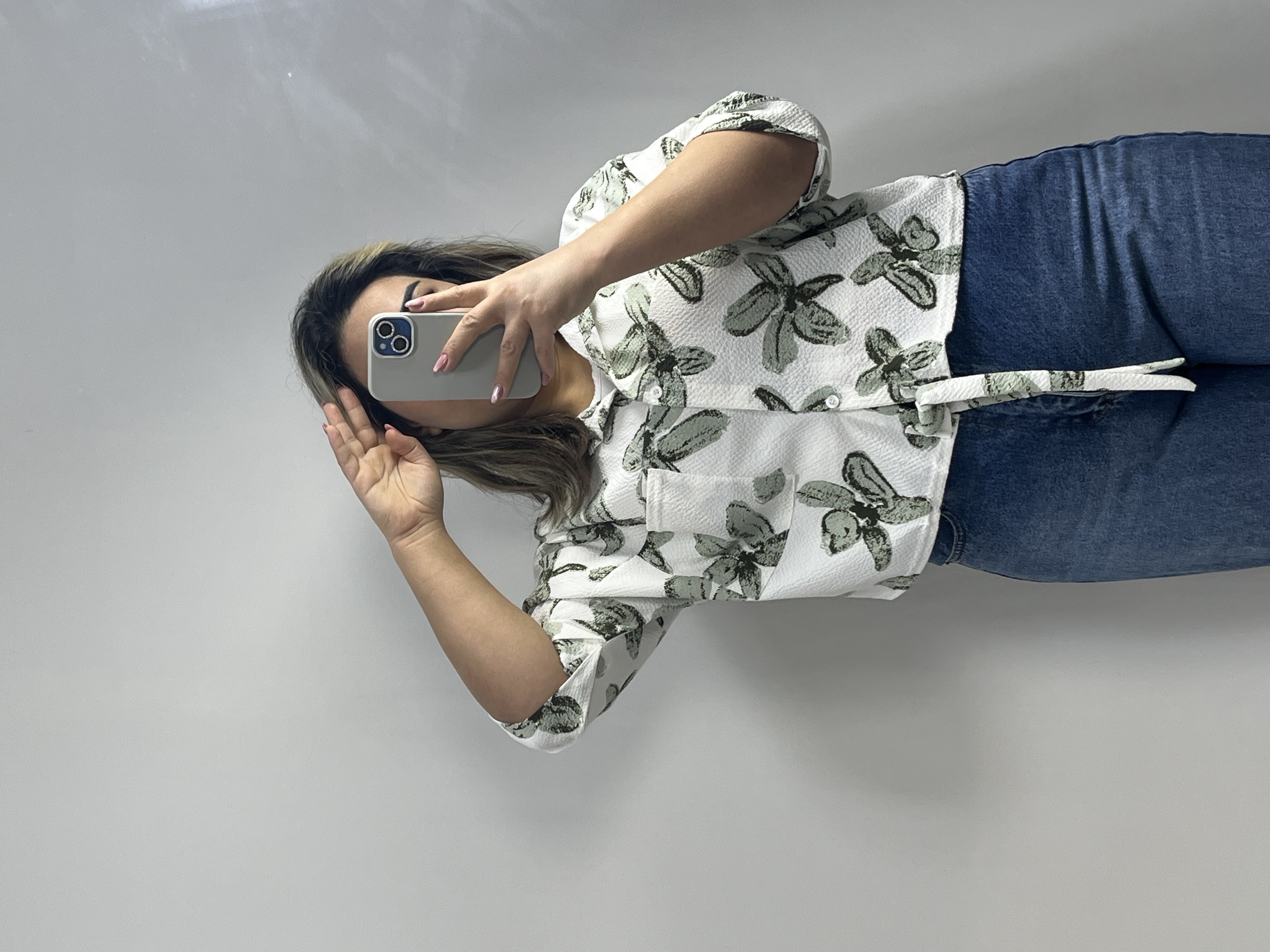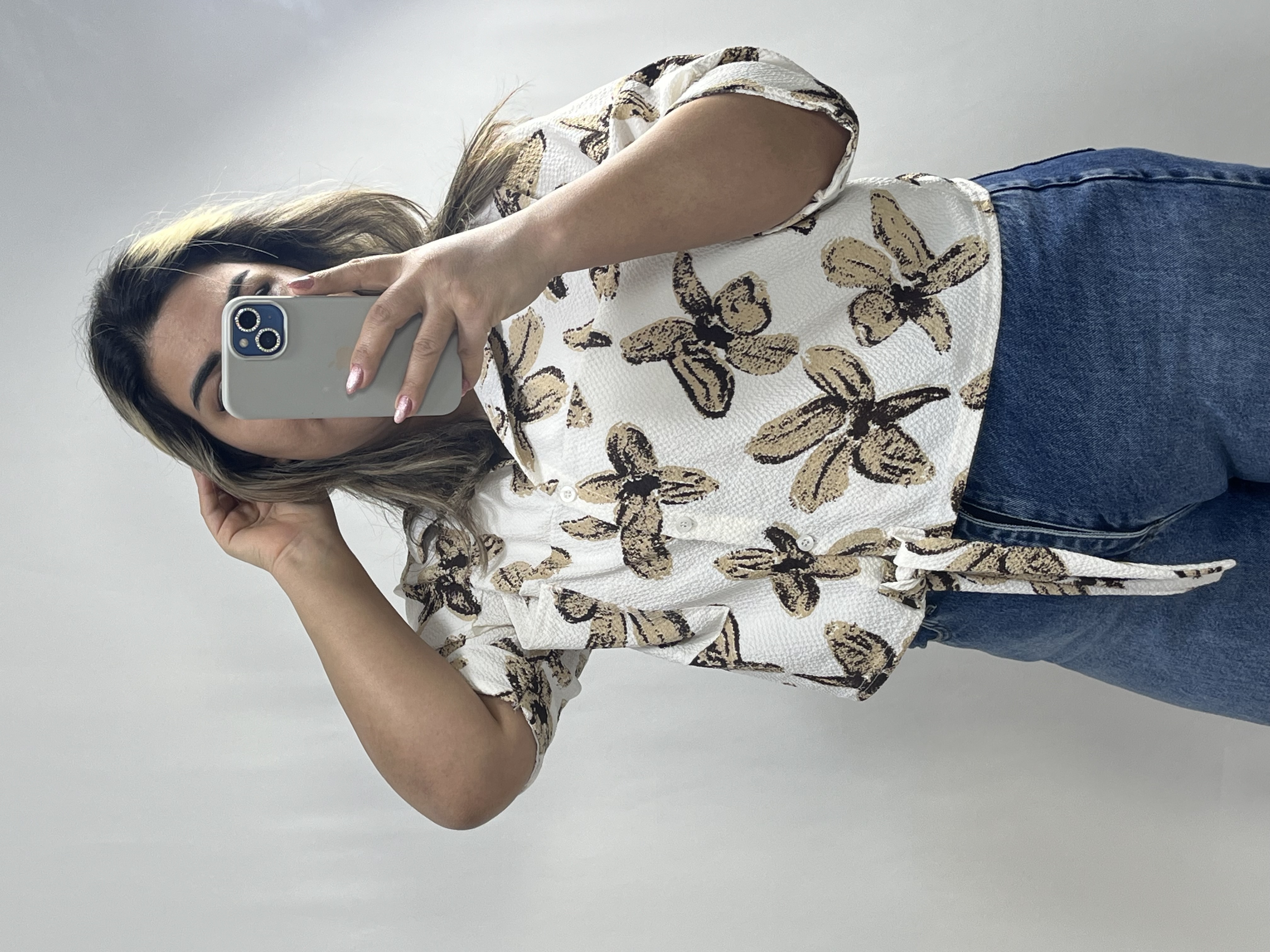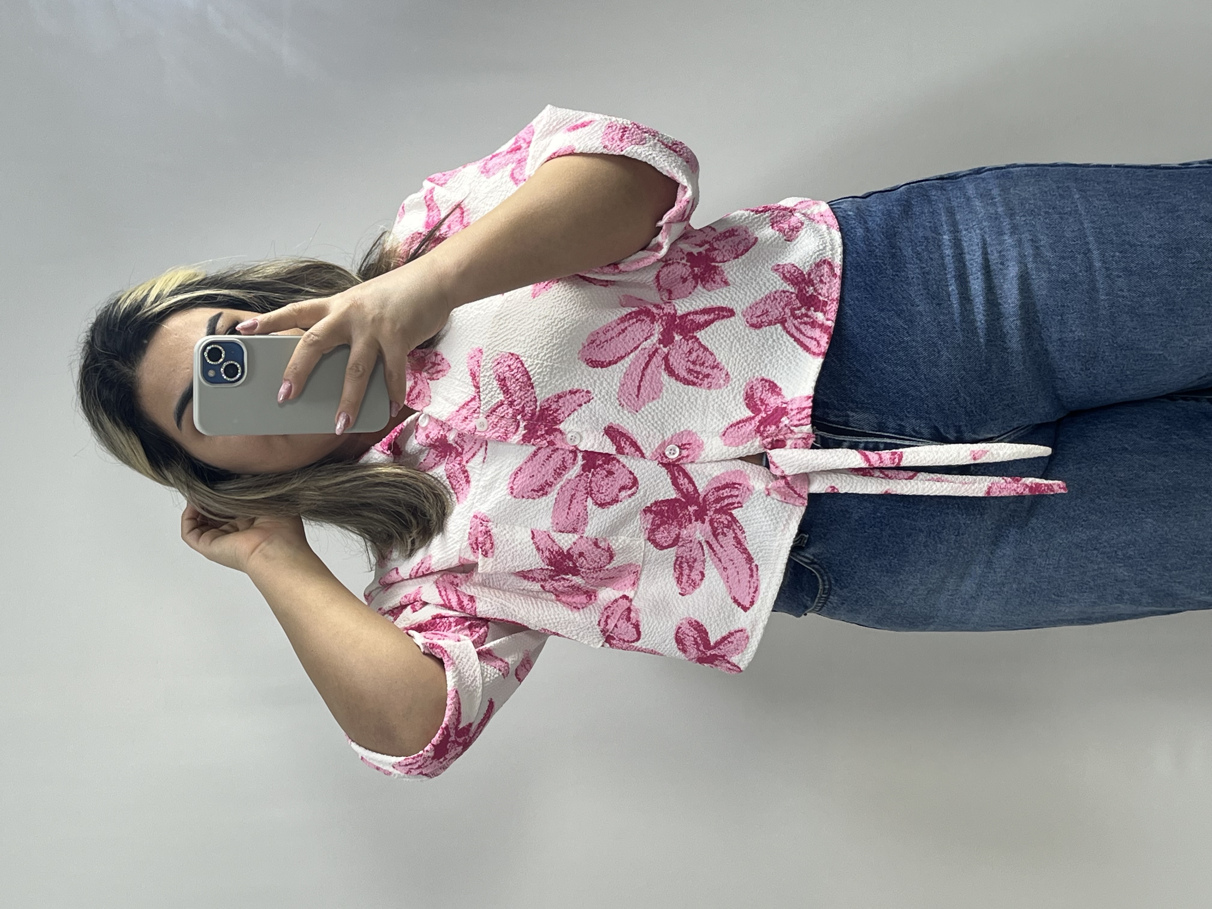 شومیزکراپ دخترانه بغل جیب دار گل گلی گره دار