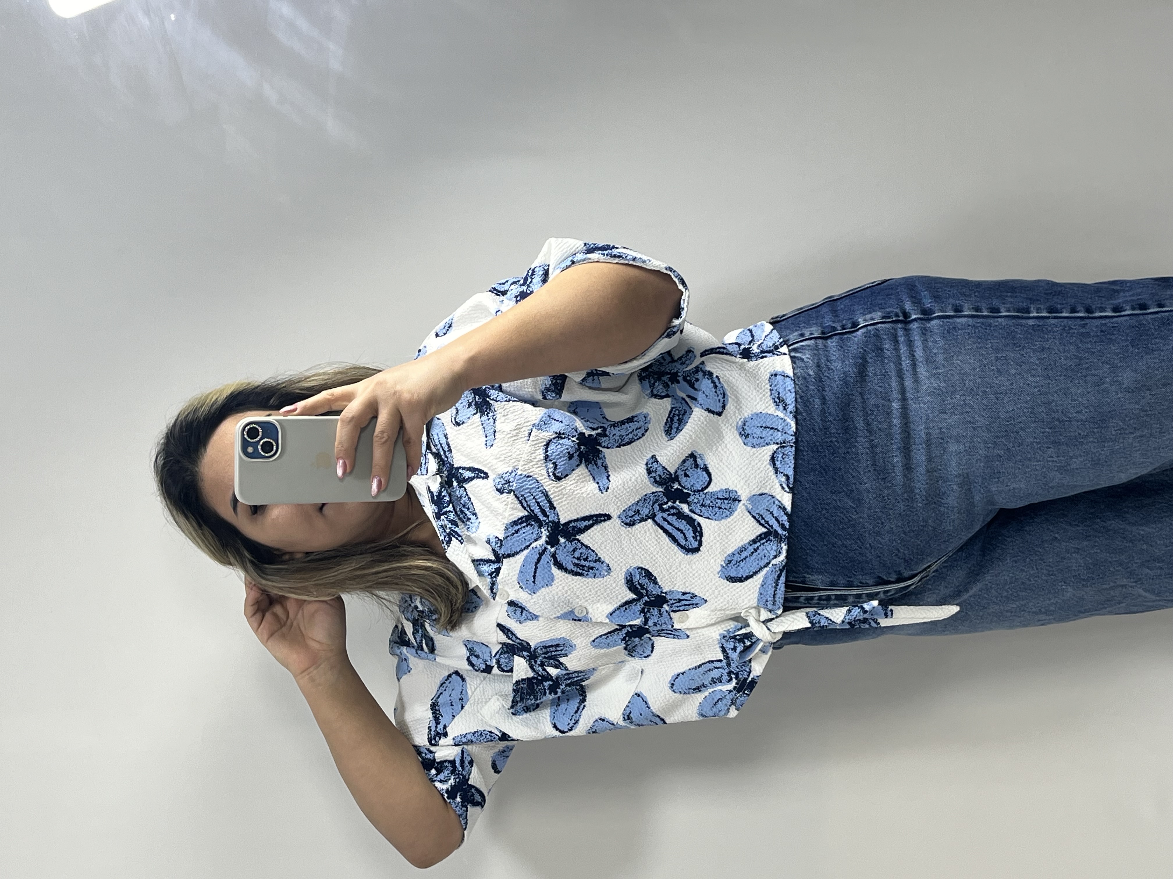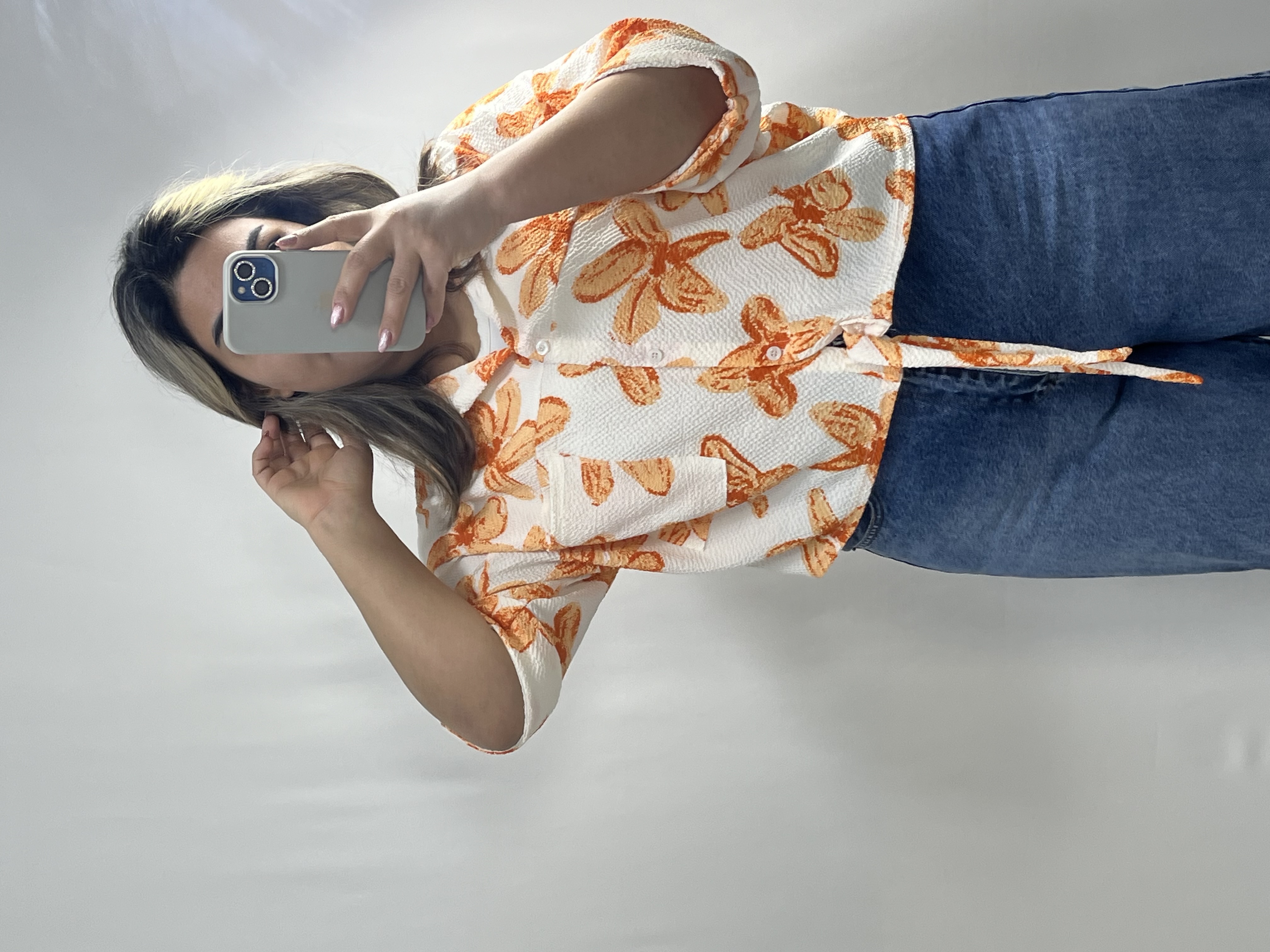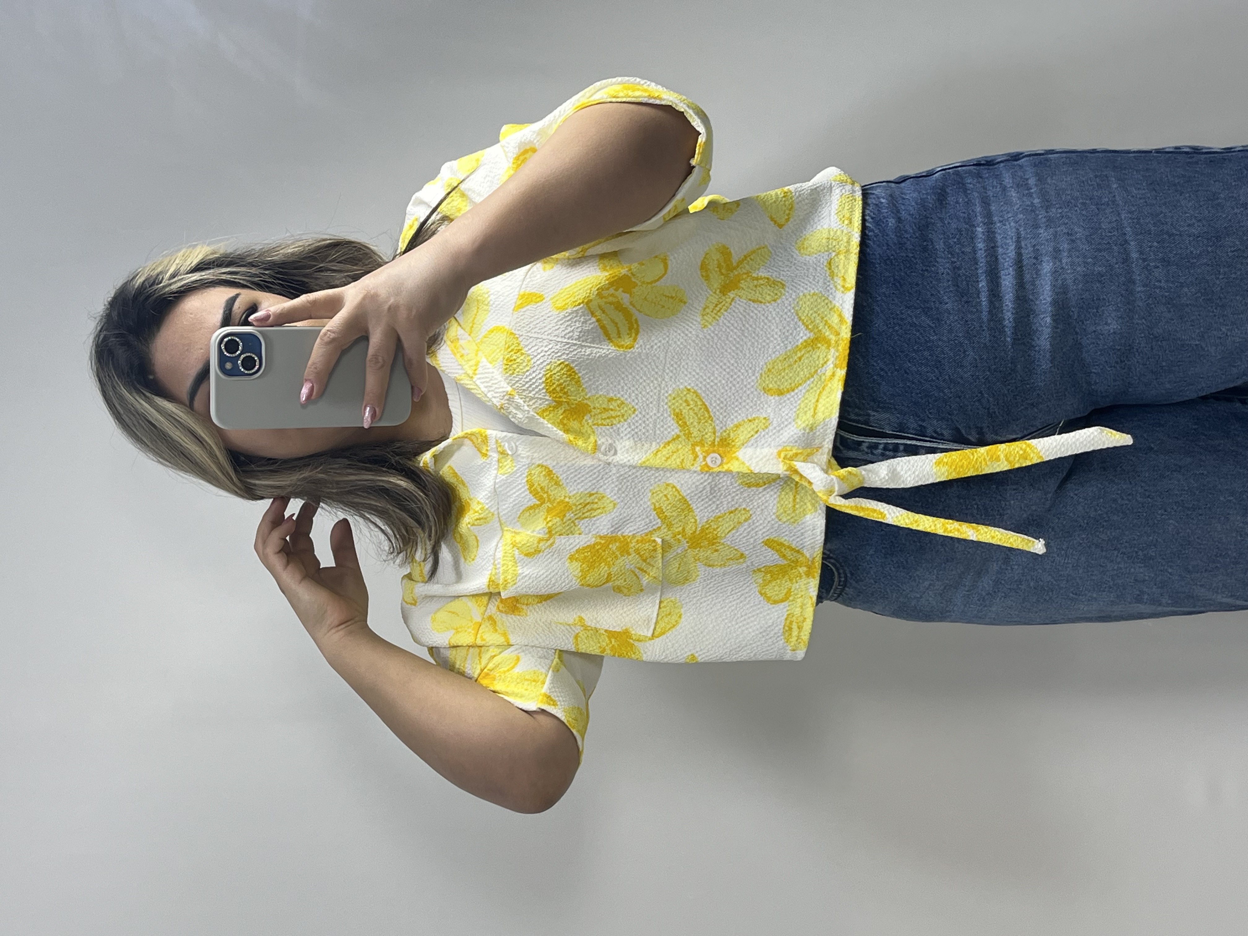 شومیزکراپ دخترانه بغل جیب دار گل گلی گره دار